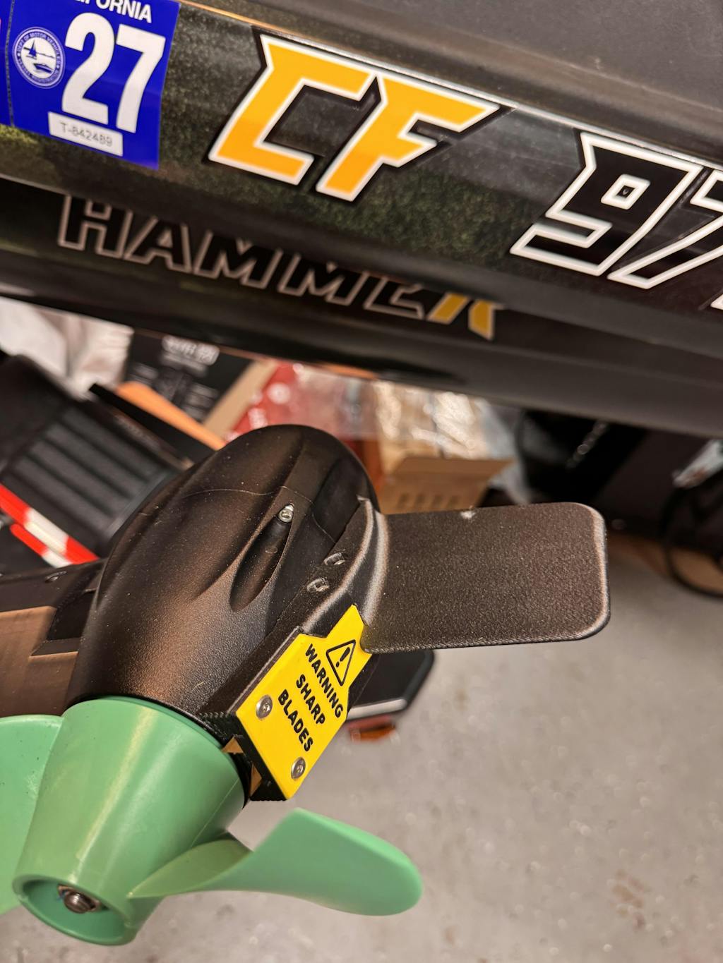 This assembly uses two replaceable standard utility blades and is available in two blade options: a corrosion-resistant steel version for freshwater use, or a ceramic blade option designed for saltwater environments. Blades are oriented in both directions, allowing a quick bump into reverse to help clear stubborn weeds wrapped around the prop.